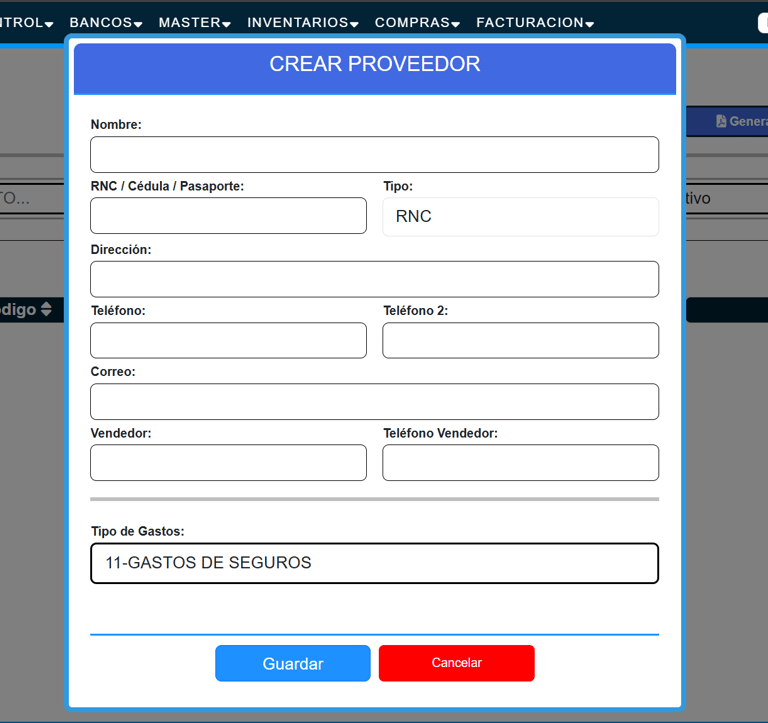 Gestiona fácilmente tus relaciones comerciales. Registra el nombre, RNC, dirección, contacto y correo de cada proveedor. Asigna su vendedor responsable y clasifica el tipo de gasto para mantener tu contabilidad clara y estructurada. Control total de tus proveedores en un solo módulo, diseñado para simplificar tu administración.
